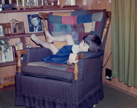 The late 1960's, or 1965 through the 1970's, to me were some of the ugliest years. The styles, colors, furniture...of course, at the time I liked them. For example, me, in my clown dress with my ultra teased hairdo. The green drapes and stylish gold, brown, and green swivel rocking chair. 1967...